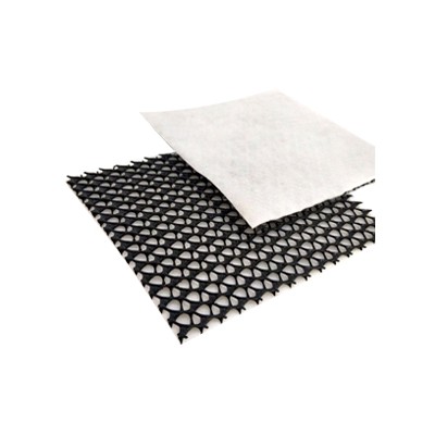 复合排水网是一种新型的排水土工材料。以高密度聚乙烯(HDPE)为原料,经特殊的挤出成型工艺加工而成,具有三层特殊结构。中间筋条刚性大,纵向排列,形成排水通道,上下交叉排列的筋条形成支撑防止土工布嵌入排水通道,即使在很高的荷载下也能保持很高的排水性能。双面粘接渗水土工布复合使用,具有“反滤--排水--透气--保护”综合性能,是目前最理想的排水材料。
